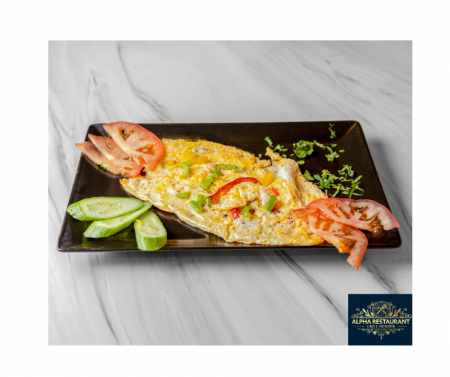 Verquirlte Eier mit Zwiebel, Tomatem,paprika, Salz und schwarzem Pfeffer.